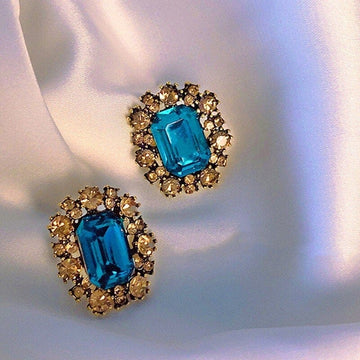 Fashion Retro Temperament Large Crystal Earrings With Diamond Earrings Exaggerated Personality Earrings With Gems