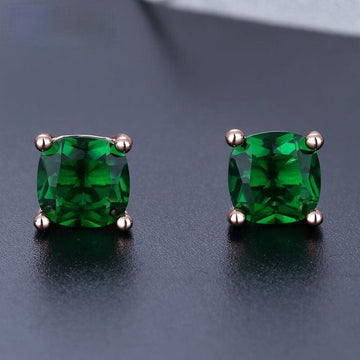 Fashion Simple Retro Rose Gold Square Green Gem Stud Earrings Charm Women Stud Earrings Girls Leisure Party Jewelry