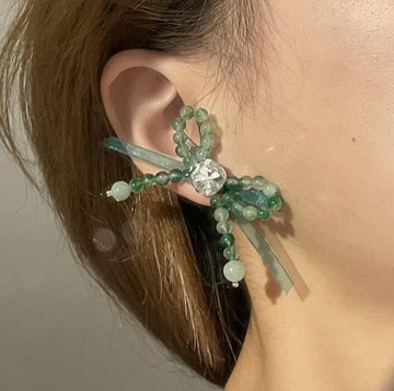 French retro baroque bow knot gem stone girl cute tassel earrings ins style temperament sweet girls ear jewelry