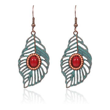 HC Vintage Metal Leaf Big Dangle Earrings Retro Red Oval Resin Gem Women Antique Jewelry Drop Earring Bohemian Tribal Earrings F