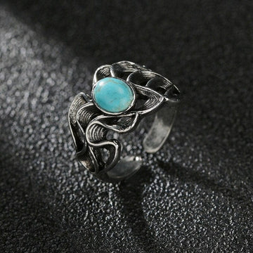 Hot Sale Fashion Retro Women Rings Blue Oval Gem Stone Finger Silvery Ring Boho Party Female Jewelry