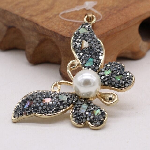 Hot Selling Natural Stone Gem Butterfly Pendant DIY Elegant Retro Cute Necklace Sweater Chain Jewelry Accessories Gift Making