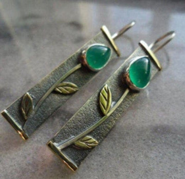 Jasper green synthetic gem Earrings European and American creative flower retro bronze Earrings