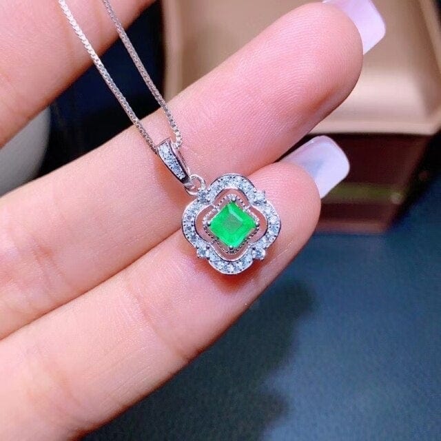 KJJEAXCMY fine jewelry 925 Sterling Silver inlaid natural emerald Women's Retro fresh square GEM PENDANT NECKLACE support detect