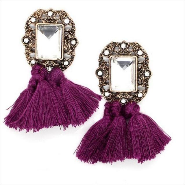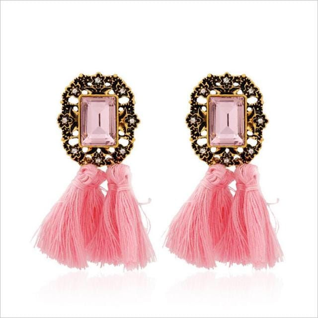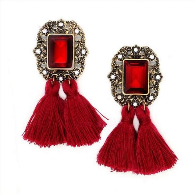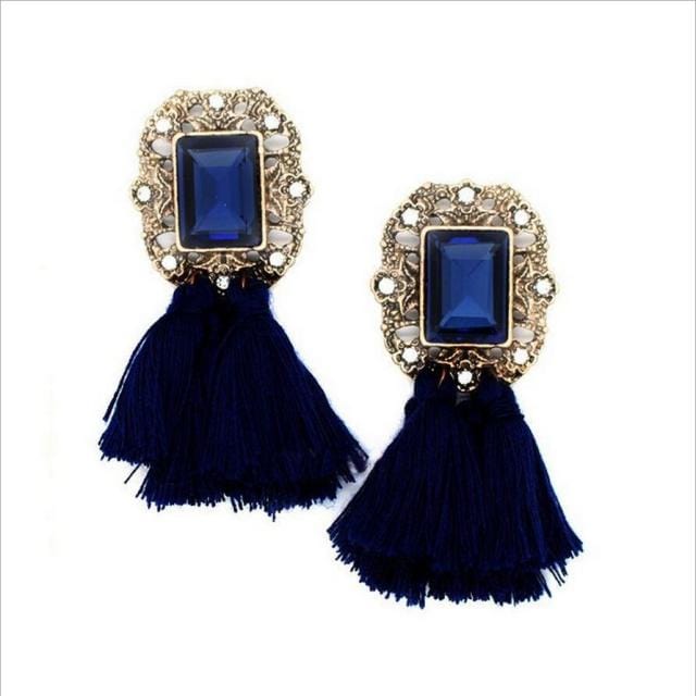Kuziduocai New Fashion Excellent Jewelry Bohemian Retro Style Imitation Gem Tassel Stud Earrings For Women And Ladies Gift A-101