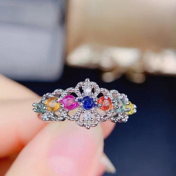 luxurious Retro Hollow Natural Multicolor sapphire gem Ring S925 Silver Natural Gemstone Ring girl Women party gift Jewelry
