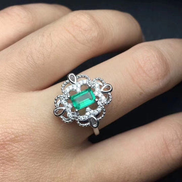 Nation grace Retro crown square Natural green emerald gem Ring S925 Silver Natural gemstone Ring Women girl party Rings Jewelry
