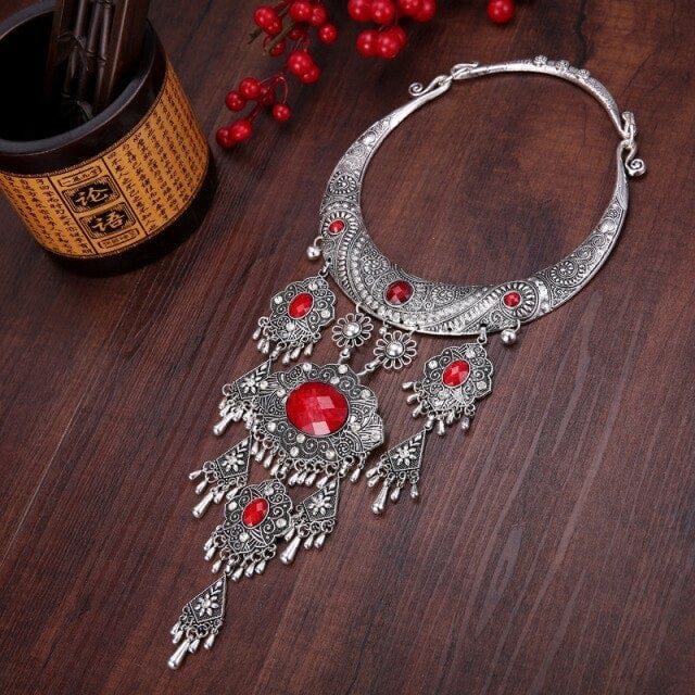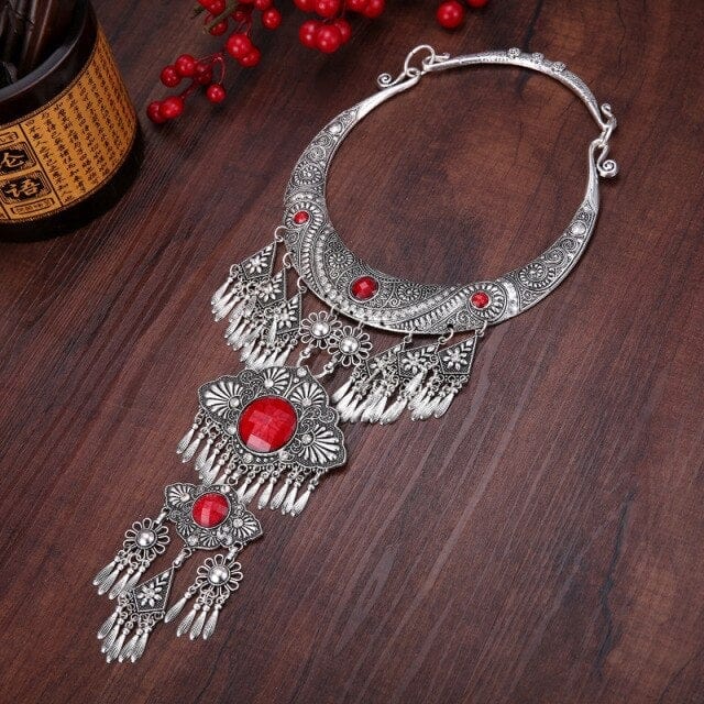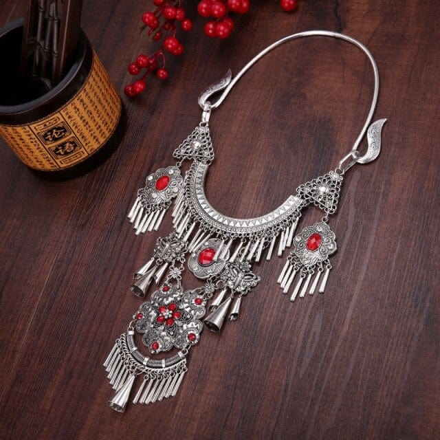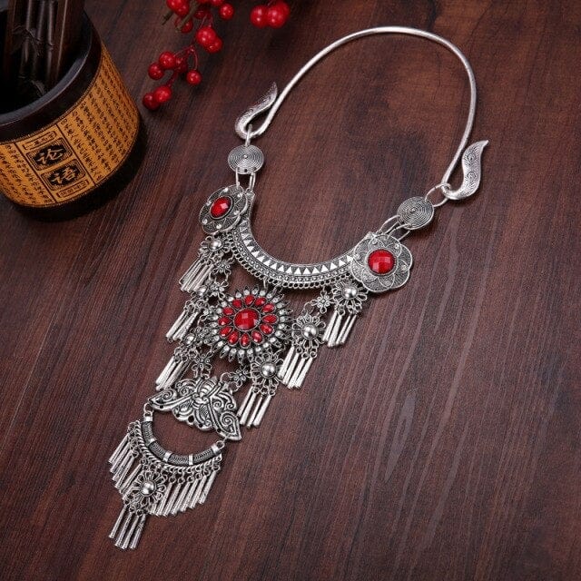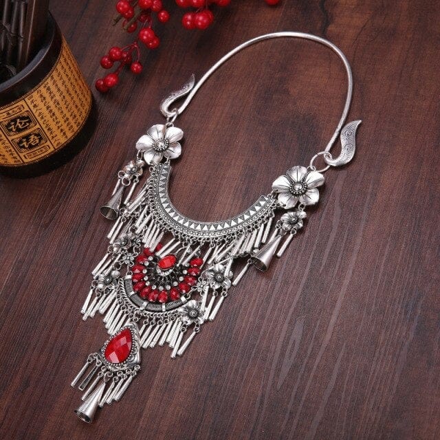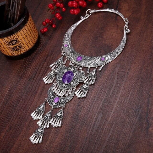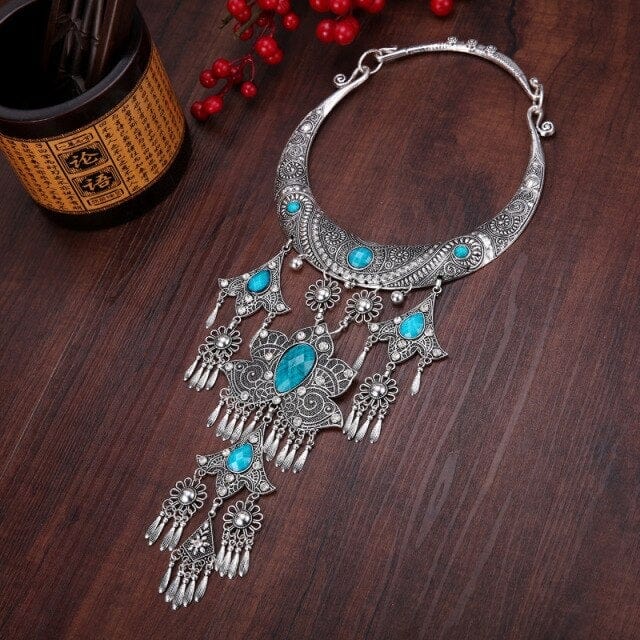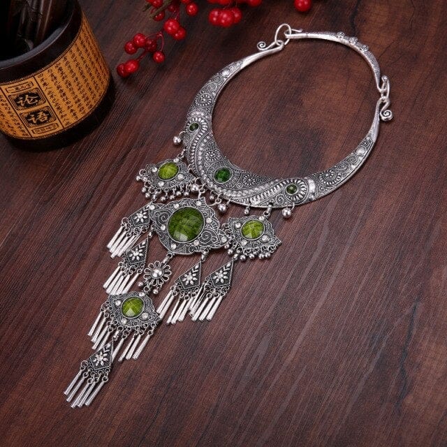 NATIONAL STYLE RETRO GEM WOMEN BIG COLLAR SEEDLINGS SILVER TASSEL WOMEN'S NECKLACE JEWELRY WHOLESALE PUSHEEN BIJUTERIA