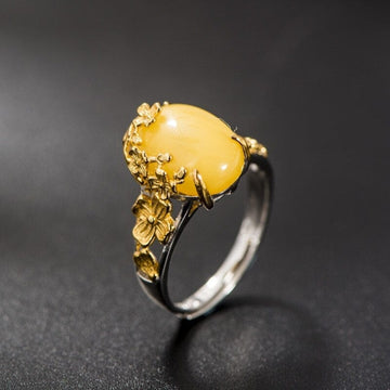 National Style Women's Ring Retro Thai Silver Jewelry S925 Sterling Silver Plum Natural Beeswax Gems Open Ended Ring Wholesale