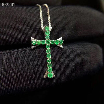 natural green emerald cross Pendant necklaces natural gemstone pendant S925 silver Retro personality Women party luck jewelery