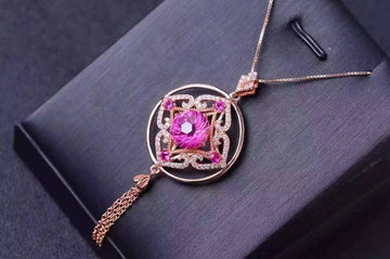 natural pink topaz Pendant natural gemstone pendant necklace S925 silver Retro round lucky Tassels girl party gift fine jewelery