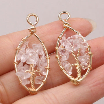 Natural Stone Gem Winding Golden Line Clear Quartz Tree Pendant Retro Elegant Necklace Earrings Jewelry Accessories Gift Making