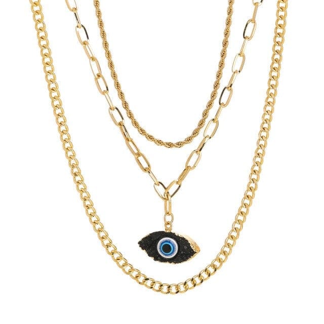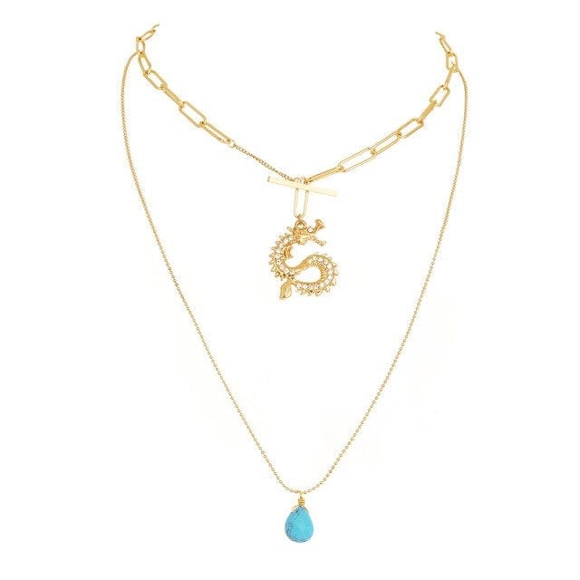 New Fashion Retro Dragon Gem Portrait Eye Shape Pendant Gold Chain Alloy Necklace For Women Party Charm Jewelry Accessories