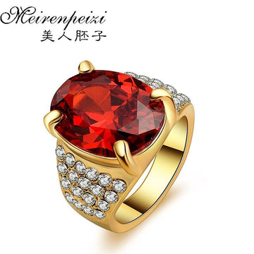 New Fashion Rings Red Stones Gems Luxury Beautuful Jewelry Retro Style Garnet Birthstone Simple Ring Crystal Jewelry