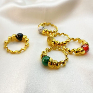New gold color inlaid gem ring female European and American retro adjustable spiral jewelry