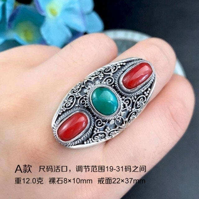 New Handmade real pure s925 sterling silver man and woman rings retro natural turquoise organic gems Tibetan jewelry