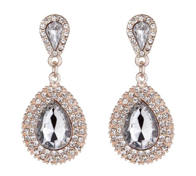 Palace Retro Luxulite Full Drilling Water Drop Rhinestones Female Earrings Sweet Earrings Long Earrings Crystal Earrings