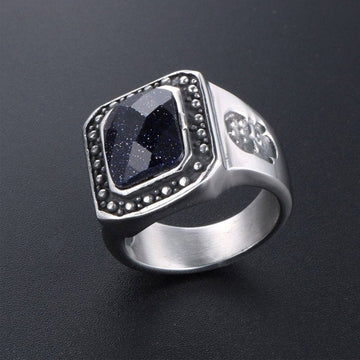 Retro Blue Starry Sky Gem Skull Ring Silver Color Titanium Steel Ring Luxury Men's and Women's Rock Party Jewelry Cocktail Ring