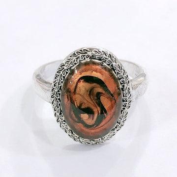 Retro Brown Coloured Glaze Ring Pattern Gem Ring Antique Silver Colour Ring Cocktail Party Jewelry Valentine Day Gift Jewelry