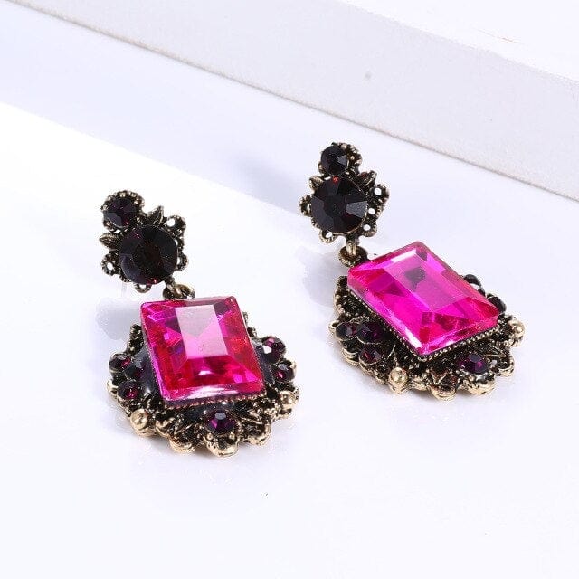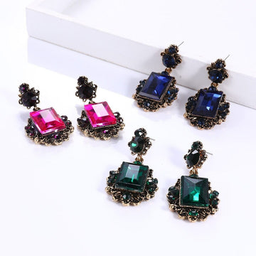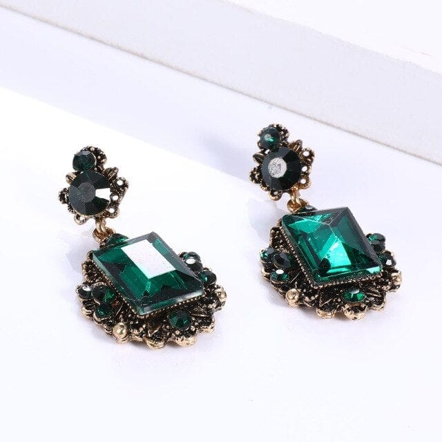 Retro Court Baroque Earrings Dark Green Gem Pendant Dark Blue Large Pendant Earrings Women's Jewelry Birthday Gift