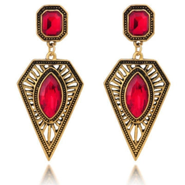 Retro Exaggerated Crystal Rhinestone Earring Luxury Gem Geometric Triangle Stud Earring for Women Long Statement Earring 2150