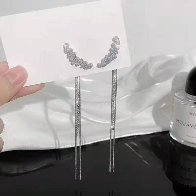 Retro gold silver long line long tassel pendant earrings female rhinestone arc geometry Korean fashion jewelry 2021 new