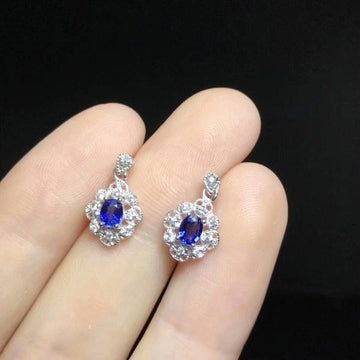 Retro Hollow geometry natural blue sapphire drop earrings Natural gem stone earrings 925 silver female party earrings jewelry
