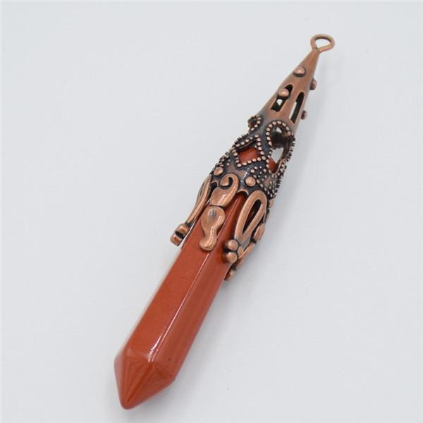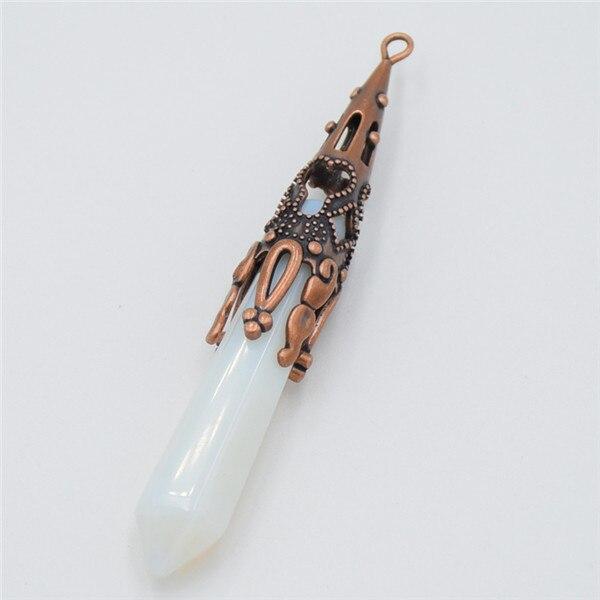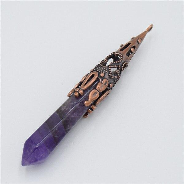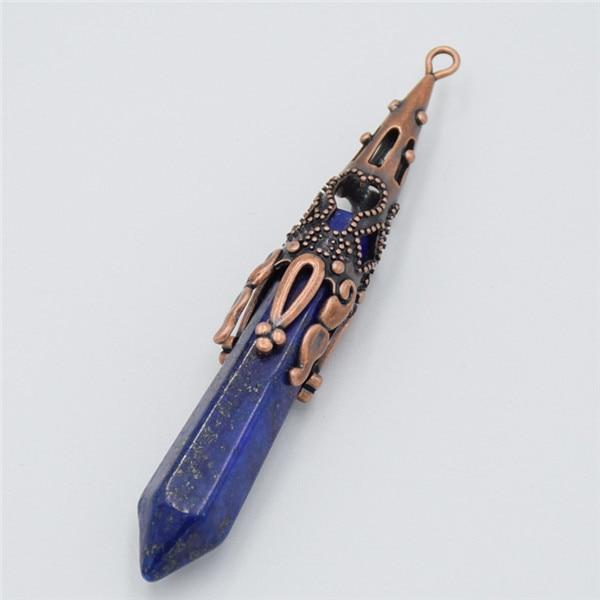 Retro Natural Gem Stone Pendulum for Divination Wicca Birthstone Chakra Reiki Amethysts Quartzs Opal Lapis Lazuli Stone Pendants