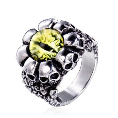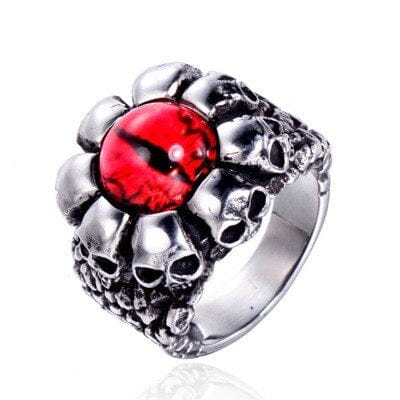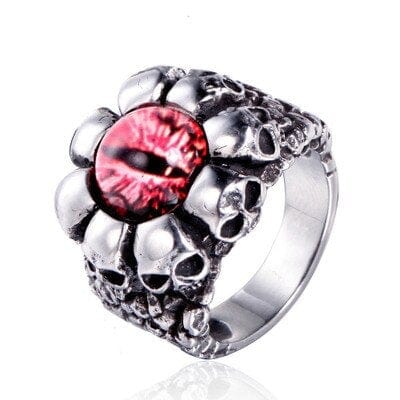 Retro Ruby Gem Rhinestone Eyes Men's and Women's Skull Head Titanium Steel Ring