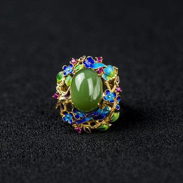 Retro Silver S925 Sterling Silver Ring Wholesale Cloisonne Colorful Butterfly Jasper Natural Beeswax Gems Silver Women Ring
