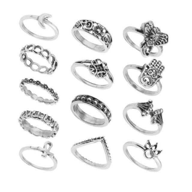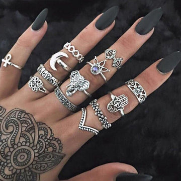 Ring wish set wholesale European and American retro crown gem big palm elephant 13 piece set ring