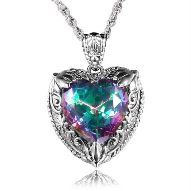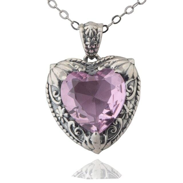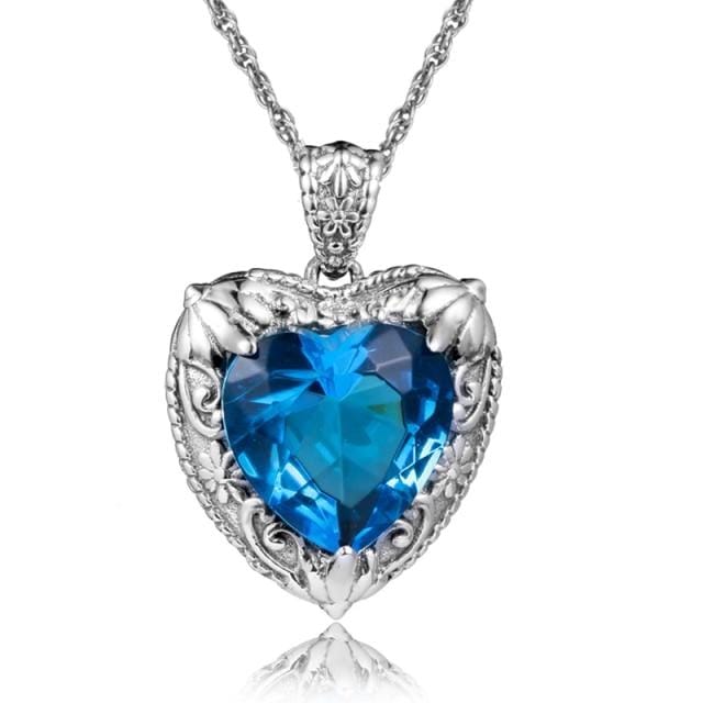 Ruby Heart Gemstone Pendant Retro Silver Necklace with Gem Stone Fine Jewelry for Women Party Dress Accessories Anniversary Gift