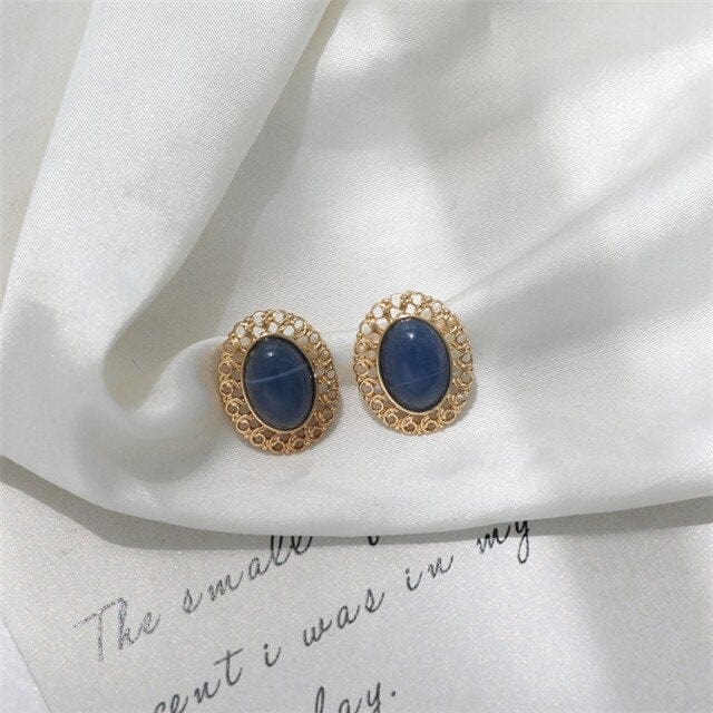 S925 nails new compact and simple French retro blue gem earrings fashion temperament ear clip female