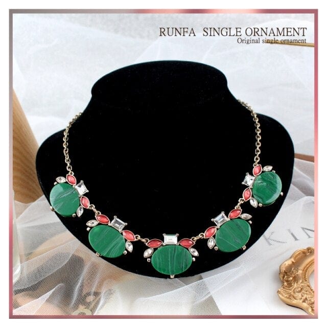 sense, retro temperament, greyish green imitation GEM PENDANT NECKLACE, short women's neck chain, sweater accessories