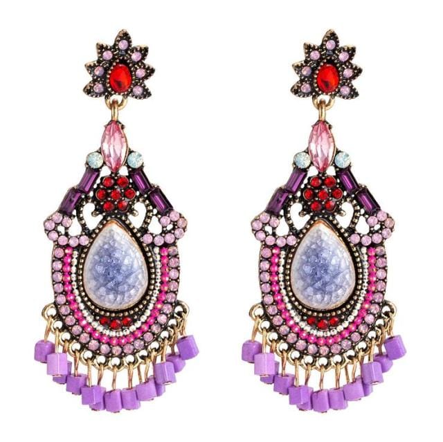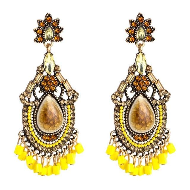 SHIFEEL New Arrival Occident Fashion Brand Style Retro Flower Tassel Acrylic Gem Big Drop Earrings Bohemia Long Pendients