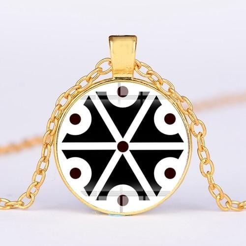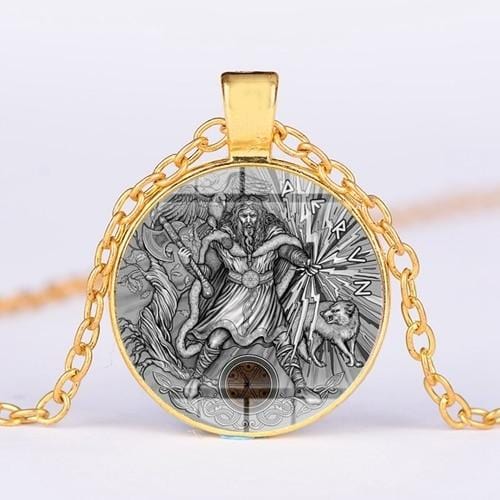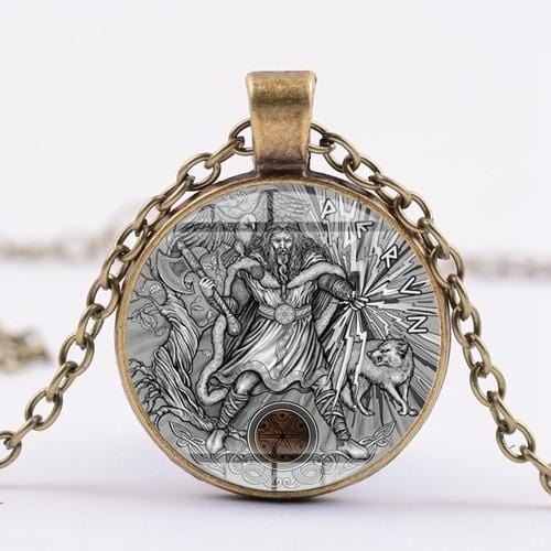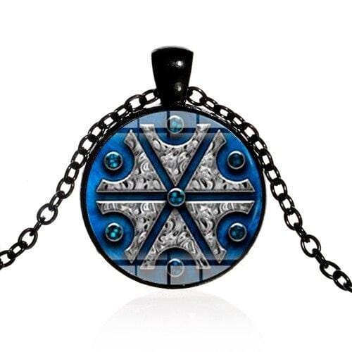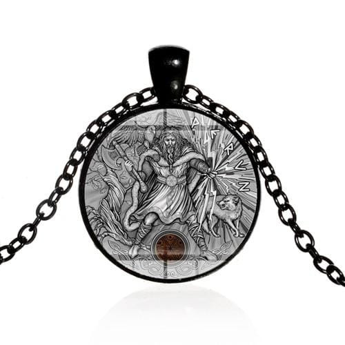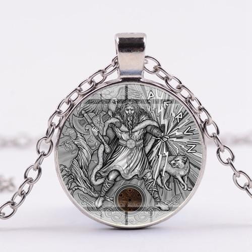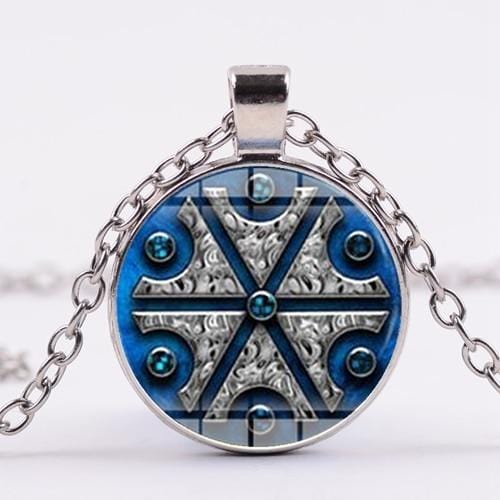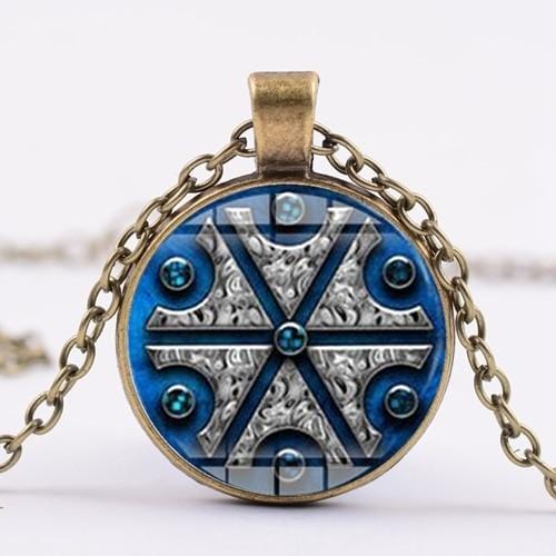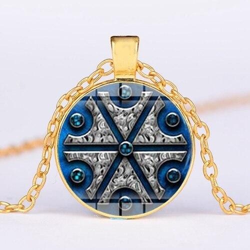 Slavic Thundermarks Necklace Thundermarks of Perun Symbol Glass Dome Gem Pendant Long Chain Retro Mens Jewelry Collection