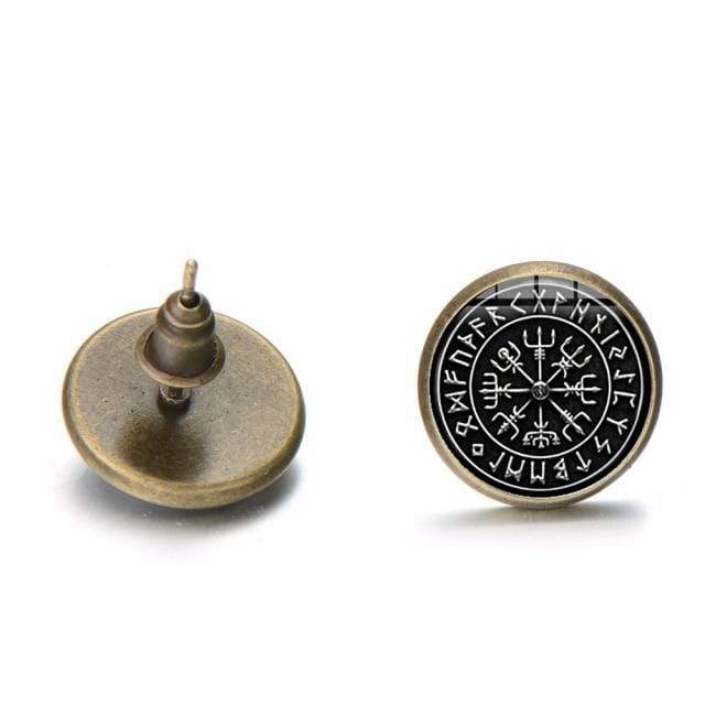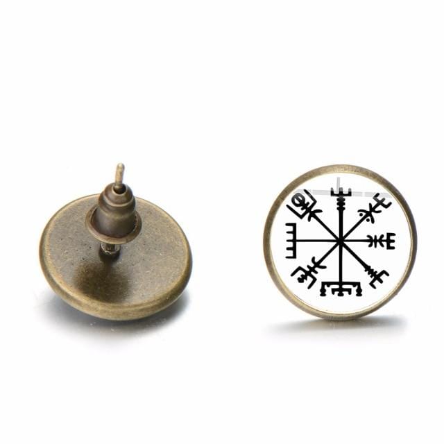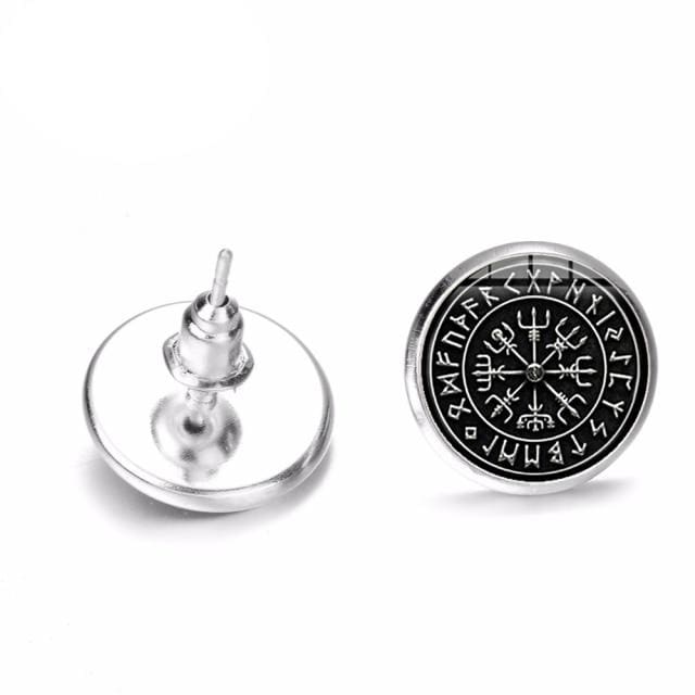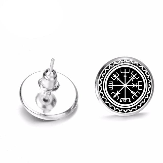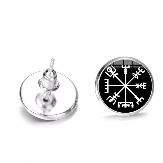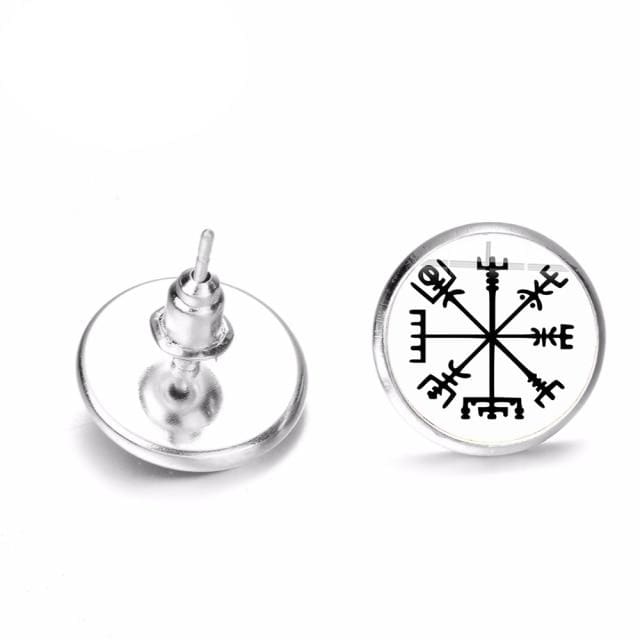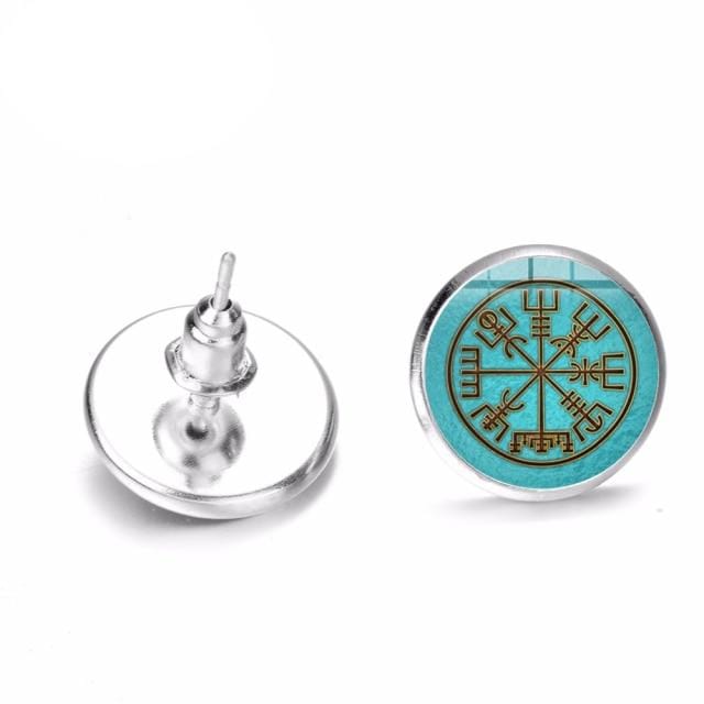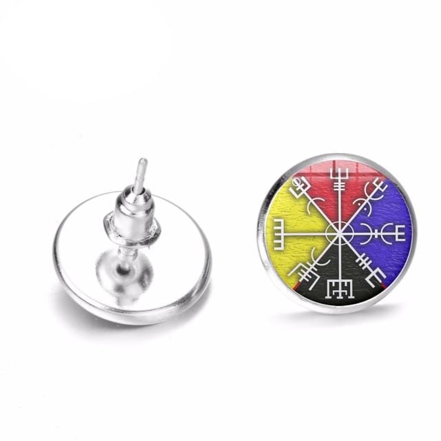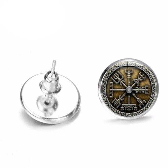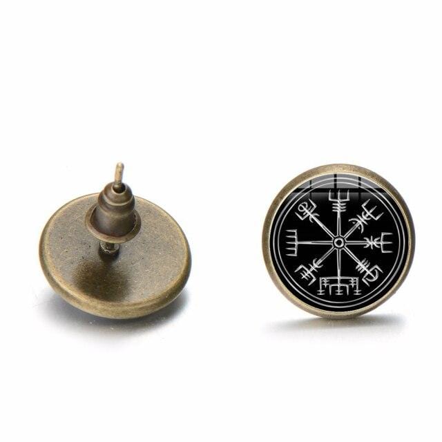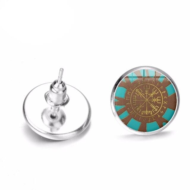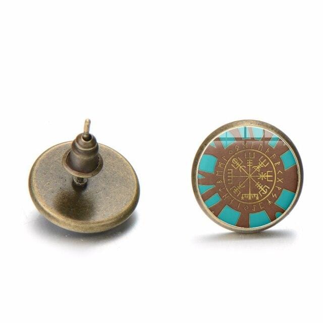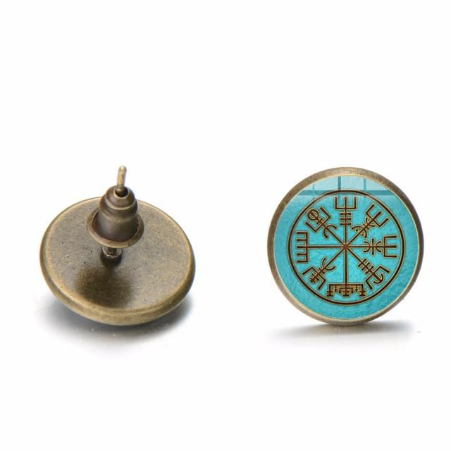 SONGDA Retro Folk-Custom Viking Compass Earrings Men Women Art Photo Glass Gem Piercing Stud Earrings Punk Rune Ethnic Jewellery