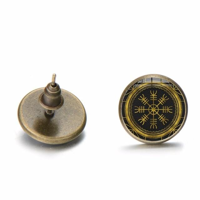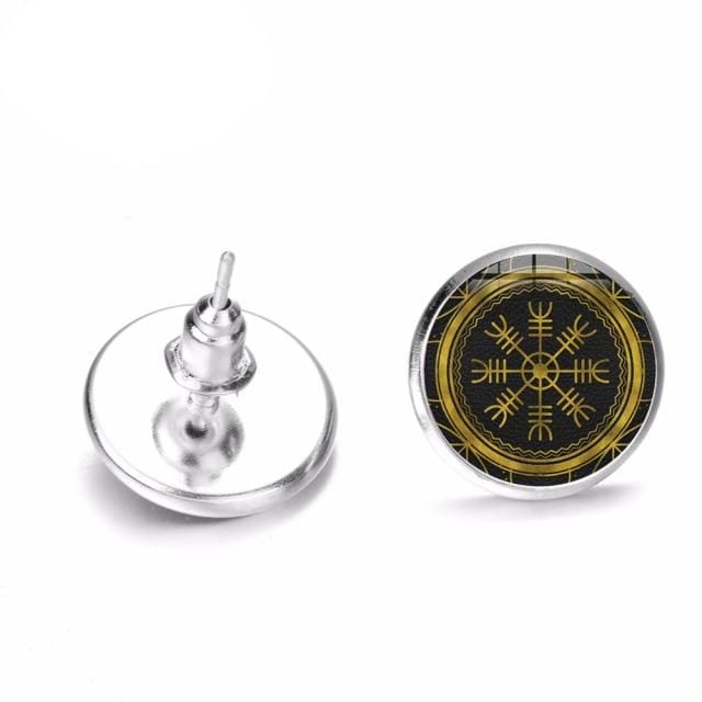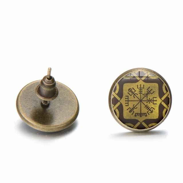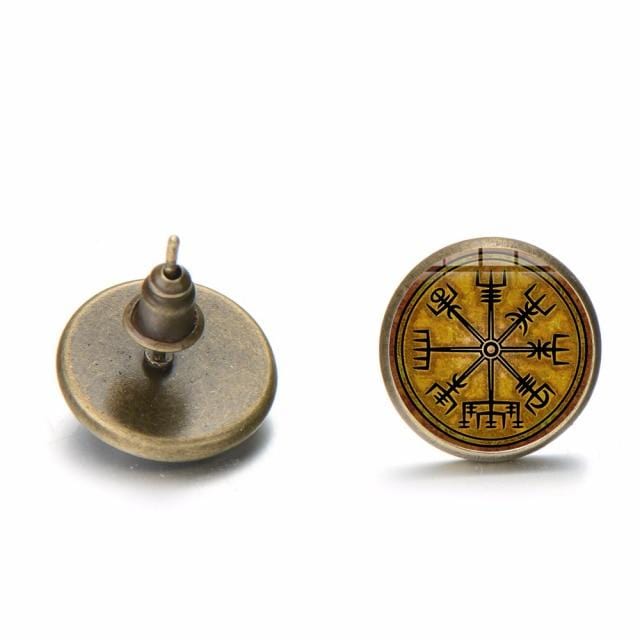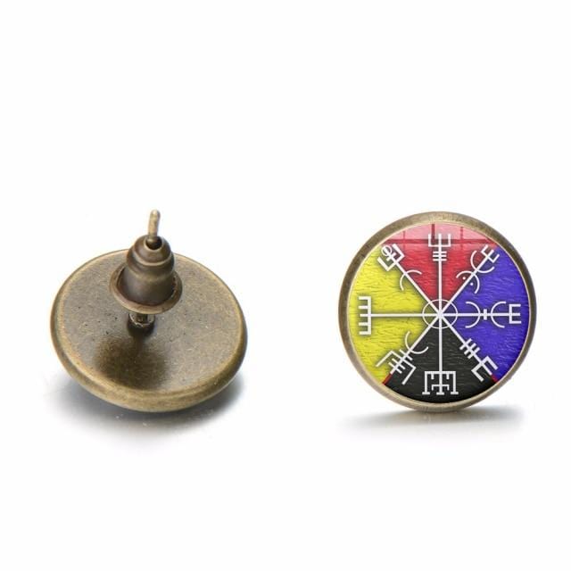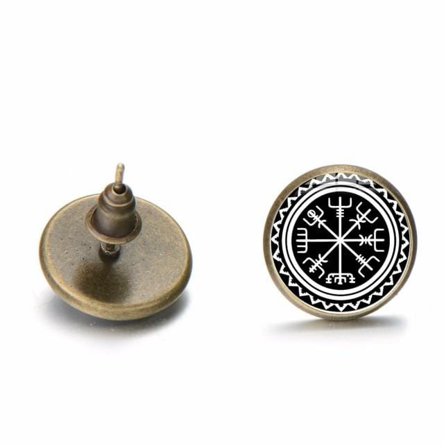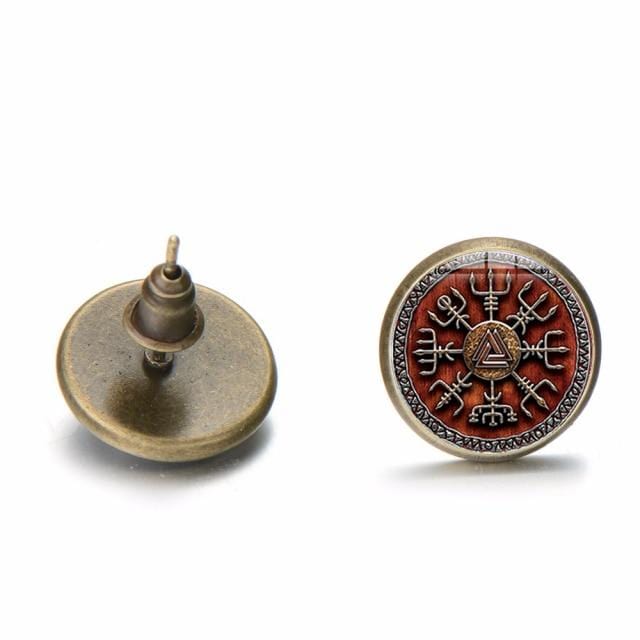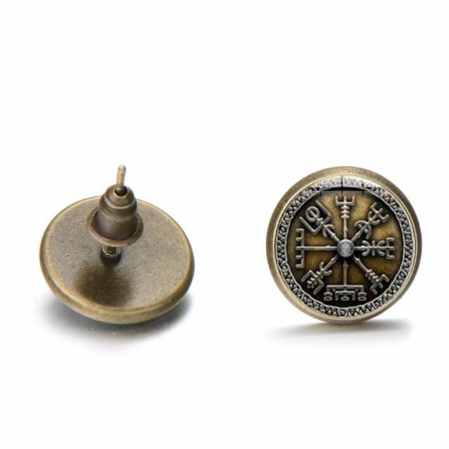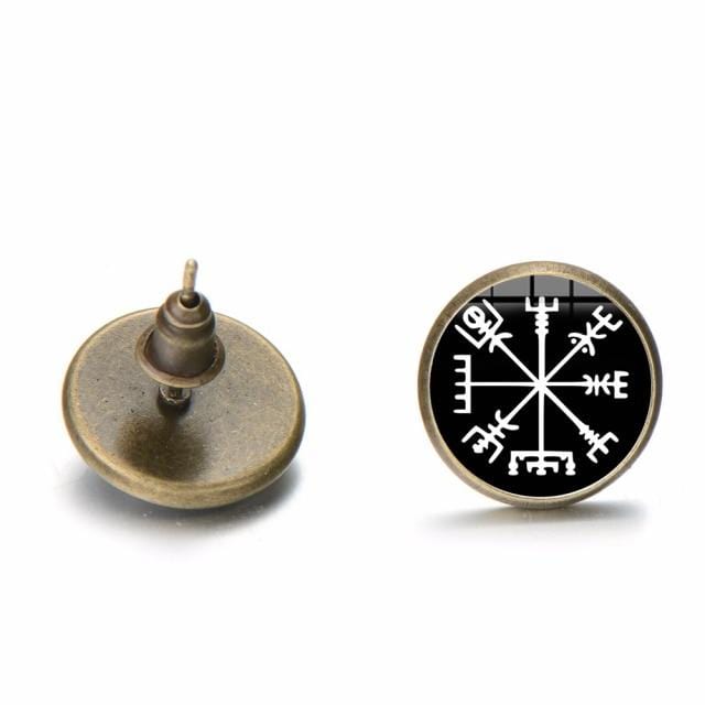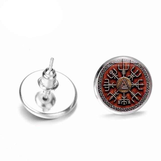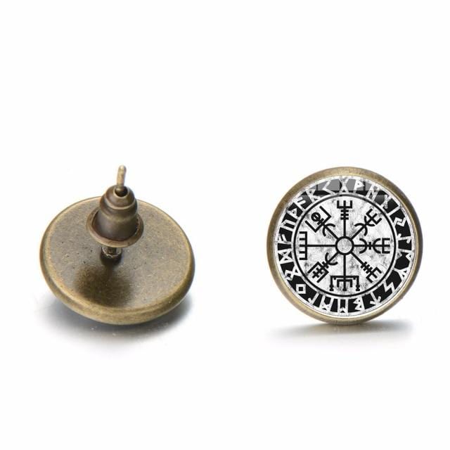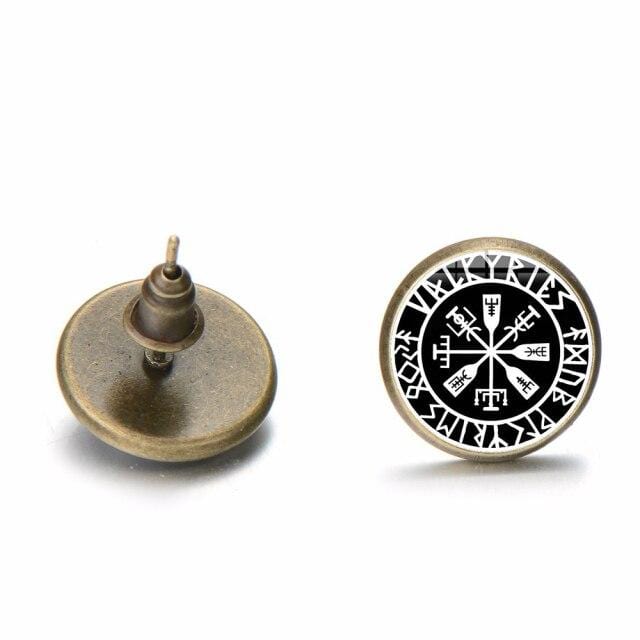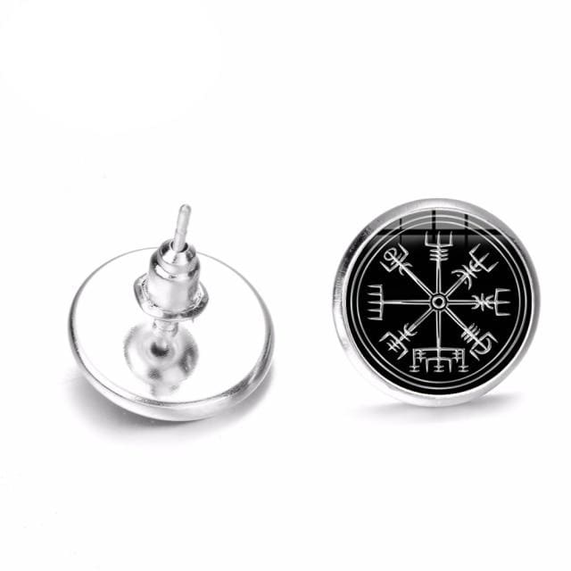 SONGDA Retro Folk-Custom Viking Compass Earrings Men Women Art Photo Glass Gem Piercing Stud Earrings Punk Rune Ethnic Jewellery