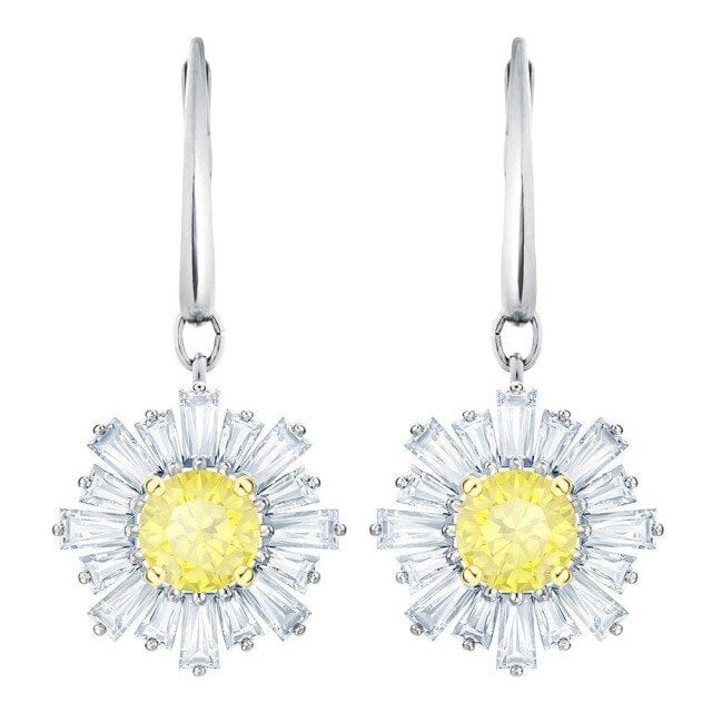 SWA New SUNSHINE Pierced Earrings Elegant Lady Shiny Yellow Gem Send Mom Girlfriend Luxury Jewelry Gift Unique Retro