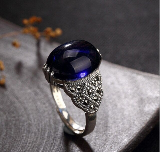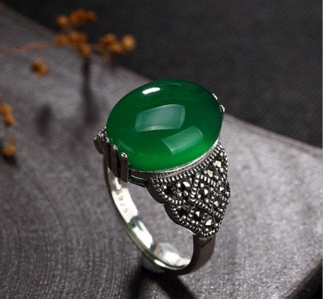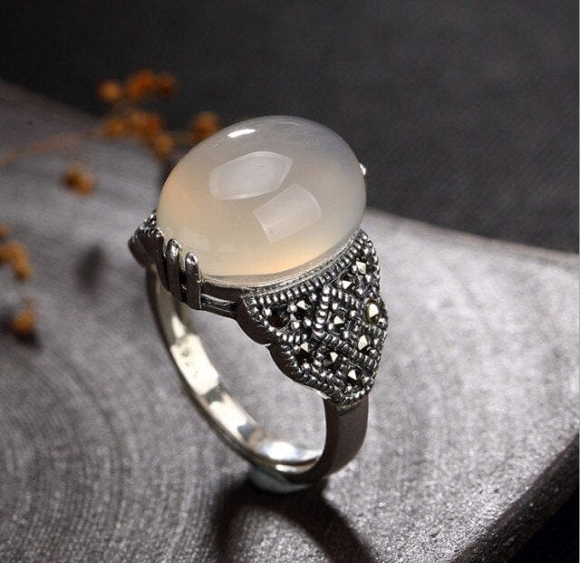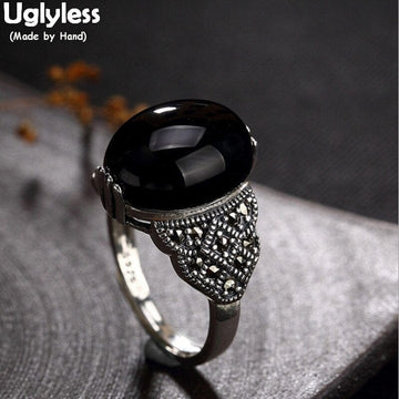 Uglyless Real 925 Sterling Silver Jewelry Natural Chalcedony Opening Rings Women Luxury Gems Finger Ring Marcasite Bijoux Retro