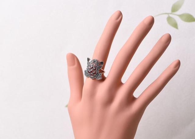 Uglyless Retro Gems Frogs Rings for Women Thai Silver 925 Silver Animals Frog Open Rings Garnet Agate Creative Jewelry Toad Ring