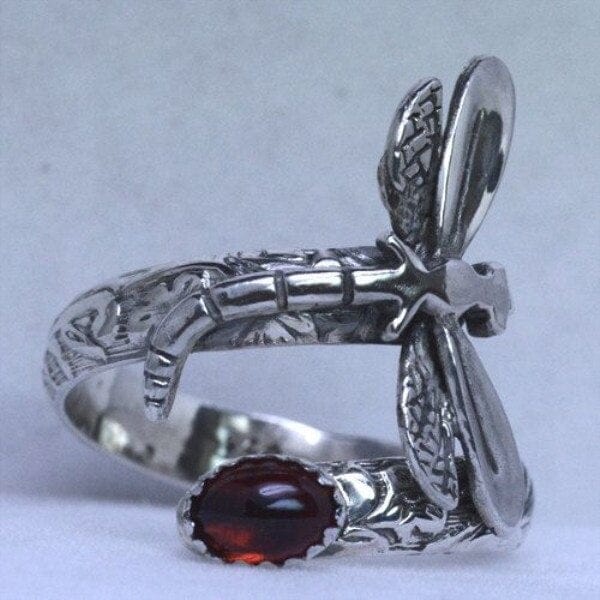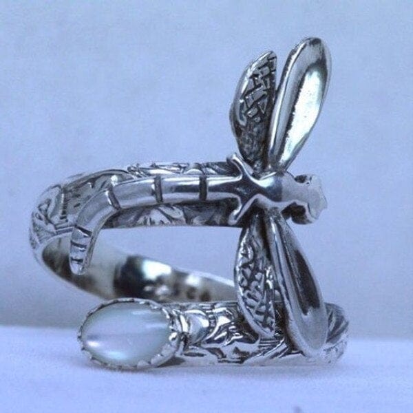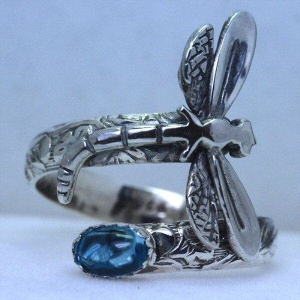 Unique retro natural gem Aquamarine Dragonfly ring women's anniversary Christmas gift size 6-10