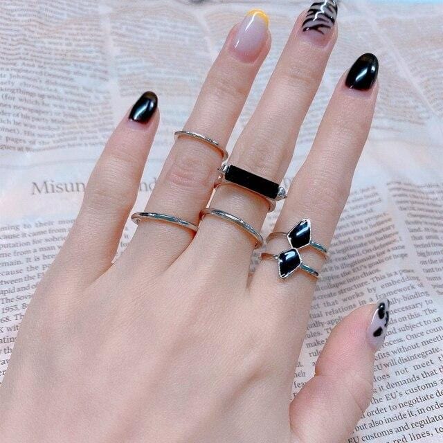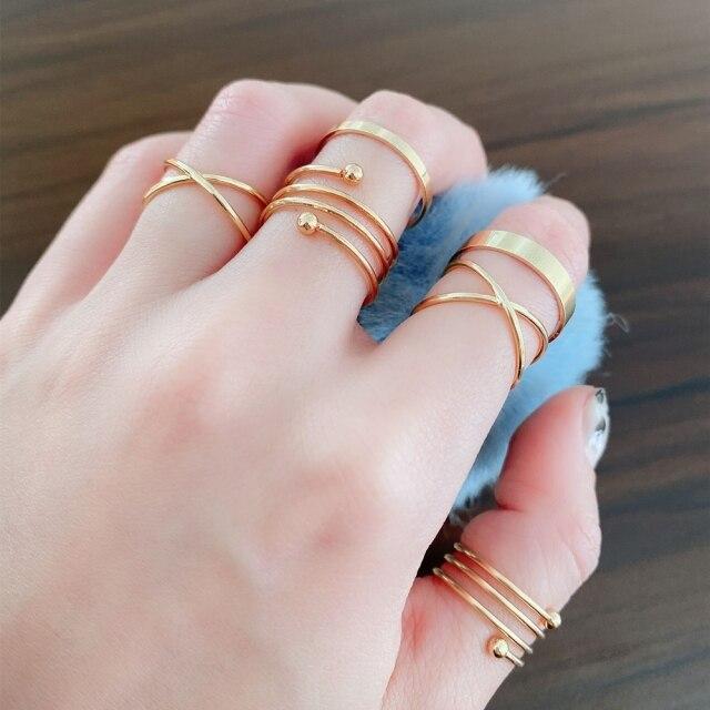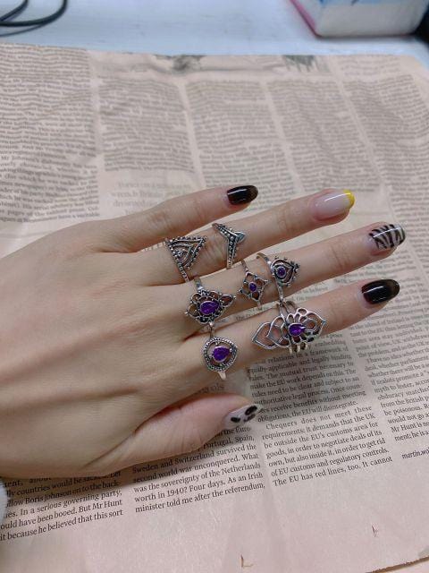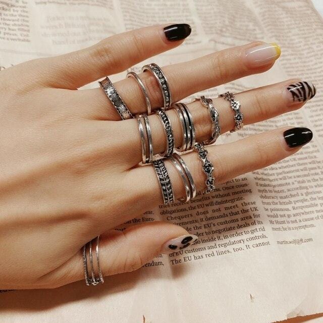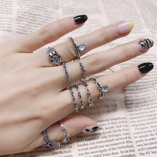Vintage Ring Set Bohemian Retro Crystal Boho Flower Leaves Hollow Lotus Gem Ring Set Women Wedding Anniversary Gift