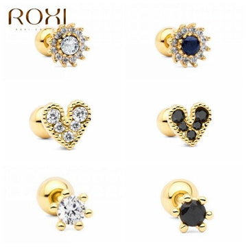 ROXI 1PC Lovely Crystals Flower Heart Round Stud Earrings for Women Girls Jewelry Unusual Earrings Piercing 925 Sterling Silver
