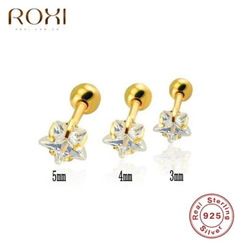 ROXI 1PC Small Stars Stud Earrings for Women Birthday Gift Piercings Earrings 925 Sterling Silver Pendientes Plata 925 3/4/5mm