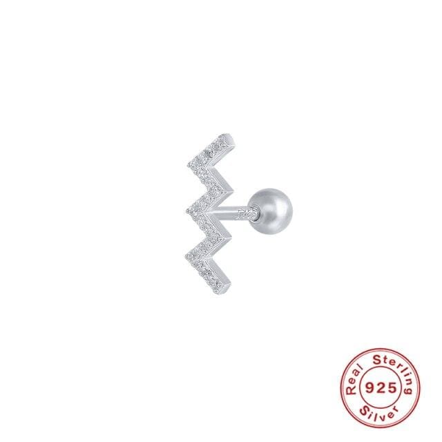 ROXI 1pcs White zircon Stud Earring For Woman Girl 925 Sterling Silver Jewellery Irregular Piercing Earrings Puncture Pendientes