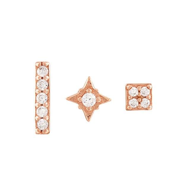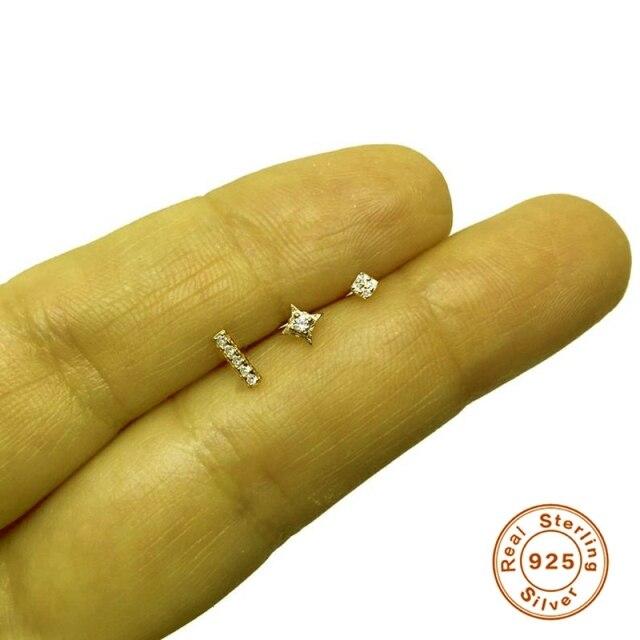 ROXI 3pcs/Set Crystal Stud Earrings for Women Small Stars Square Earing Jewelry 925 Sterling Silver Unusual Earrings Piercing