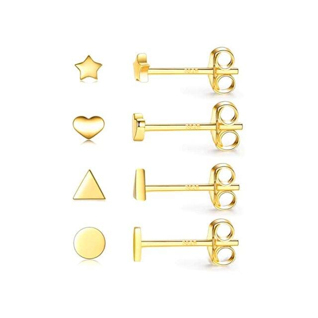 ROXI 4Pcs Small Glossy Star Heart Round Triangle Stud Earrings for Women Jewelry Earring Piercing 925 Sterling Silver Pendientes