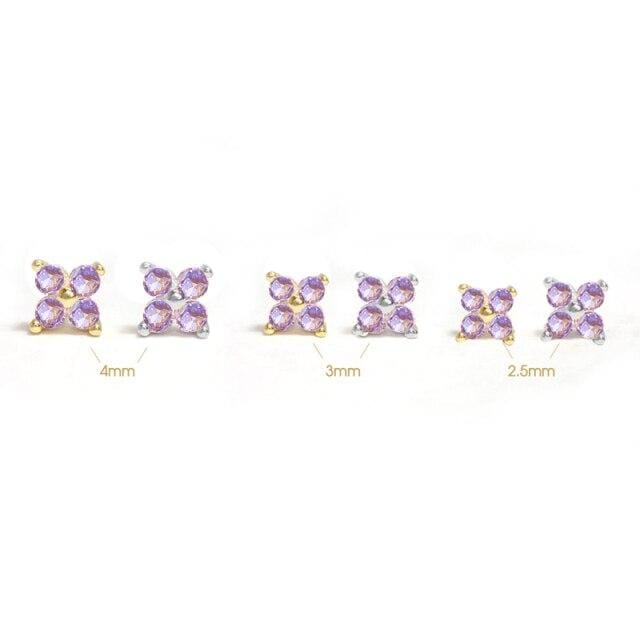 ROXI 925 Silver Crystal Flower Piercing Stud Earrings for women 3/4/5mm Small Cartilage Earrings Lovely Zircon Women's Earrings