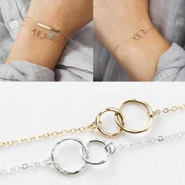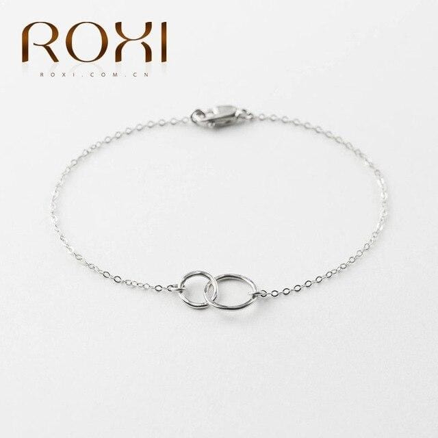 ROXI 925 Sterling Silver Bracelet Double Ring Circle Charm Bracelets for Women Simple Gold White Gold Women's Bracelets Jewelry